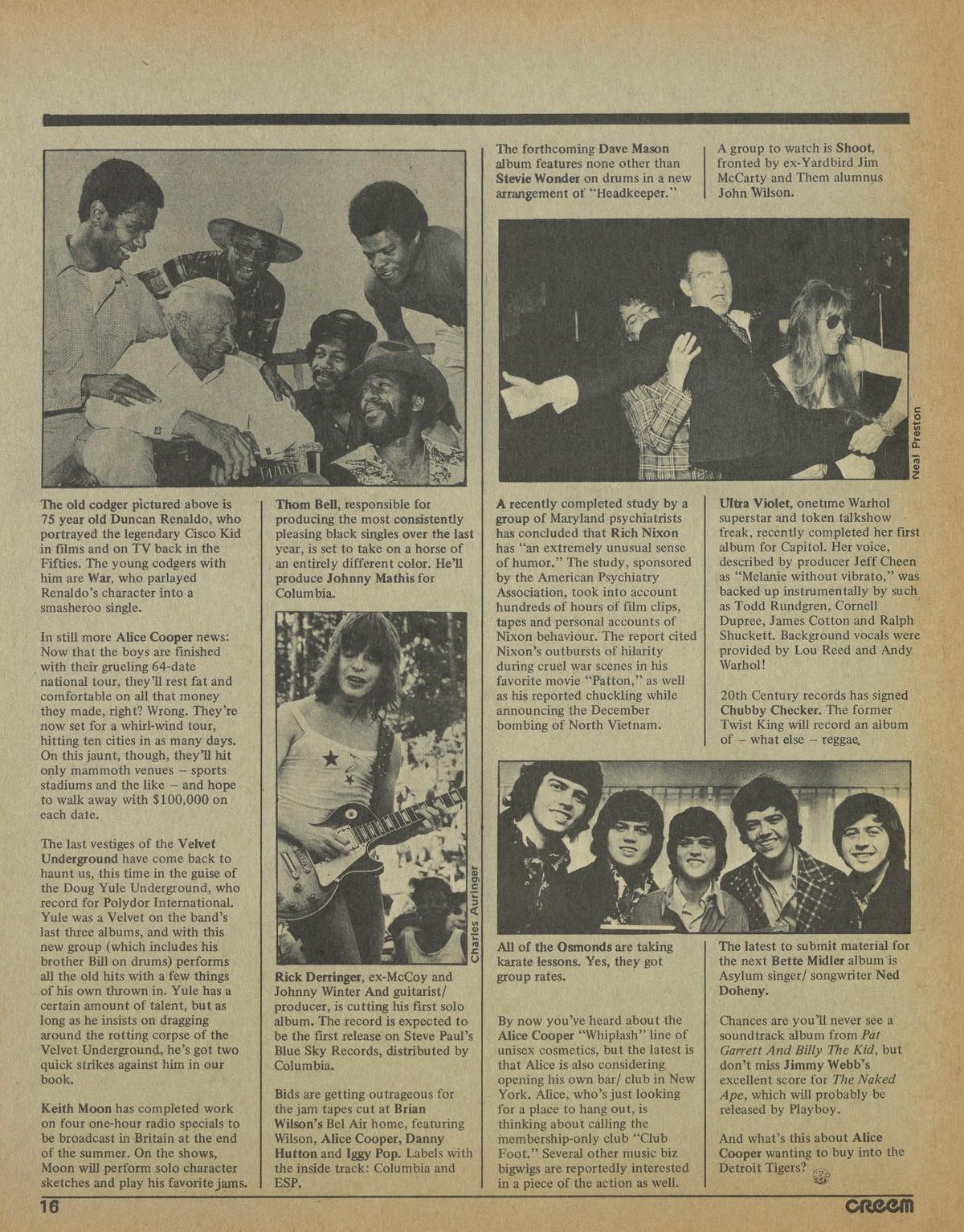 Newsweek finally spilled the beans, so we guess it’s finally ok to say it out loud: Alice Cooper’s real name is Vincent Furnier. As if producing the ex-biggest band in the world (Grand Funk Railroad) isn’t enough, Todd Rundgren will now produce the band many people are hoping can duplicate Funkian popularity: the New York Dolls.