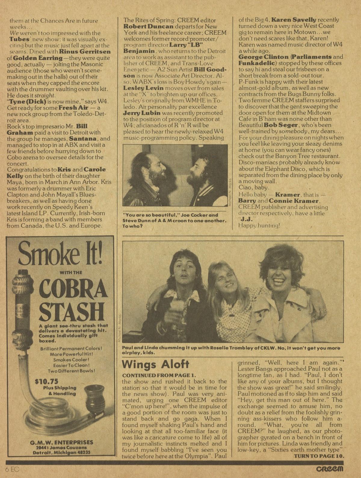 A motley crowd of 34,000 old Beatle fans and young Wings enthusiasts packed the Olympia for two nights in May when Paul McCartney made his first Detroit appearance in ten years.