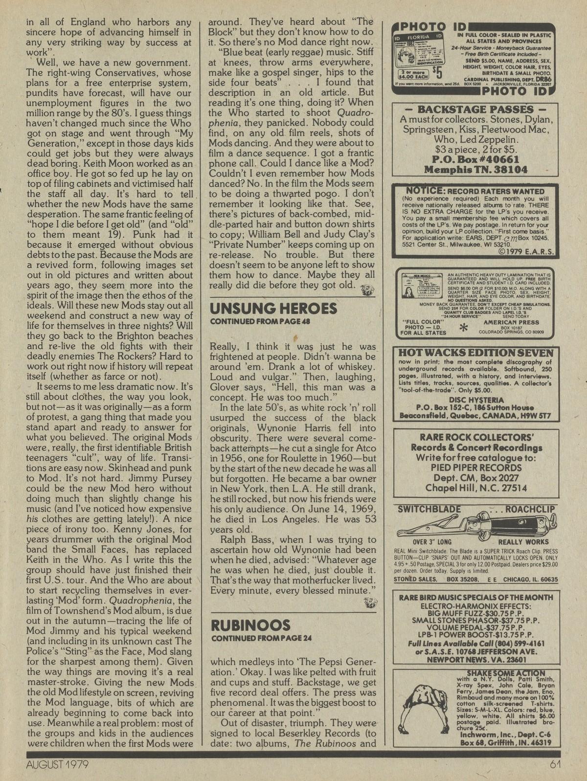 We know that rock 'n' roll, like panty hose and the sea, was not a human invention; that it was the work of the Holy Ghost. When, in an article called "Women Won't Leave Me Alone," published in the October, 1954, issue of Tan, Wynonie Harris bragged that he "started the present vogue of 'rocking' blues tunes," he failed to mention the Holy Ghost, who had chosen Harris—as he had earlier chosen the Virgin Mary, Blackbeard, and Aldo Ray's Mom—to serve him in his work. But Wynonie Harris was like that. Not even the Holy Ghost Hisself was safe from the unmoving sword of his arrogance.
