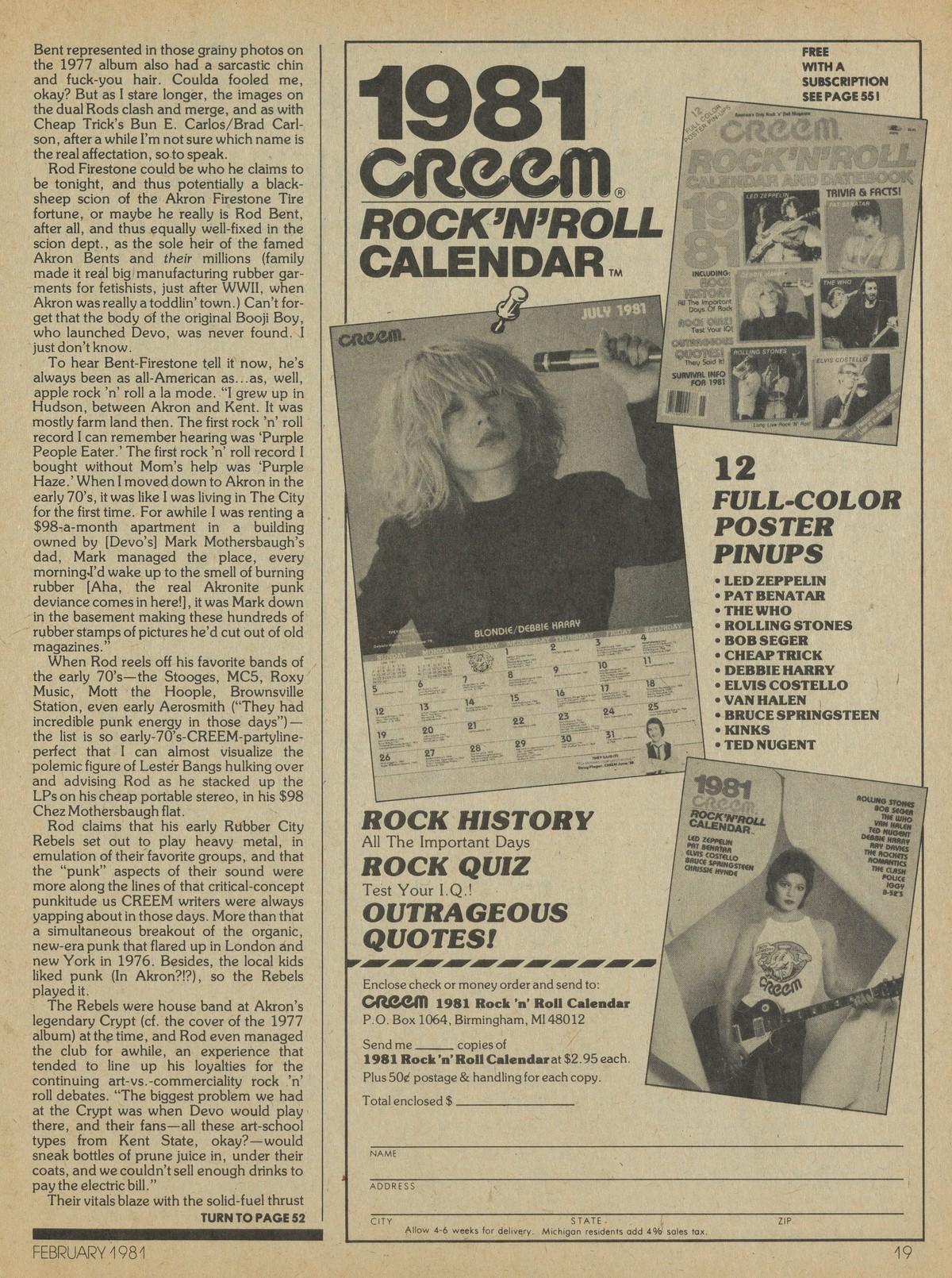 Halloween's just not what it used to be, not like it was my day' nohow. And how 'bout Akron-extracted rock groups? How have they survived the nation's brash U-turn into the tight-lipped 80's? Well, 'Que sera, sera,' as fellow Akron rocker Rachel Sweet put it, when she got her first period.