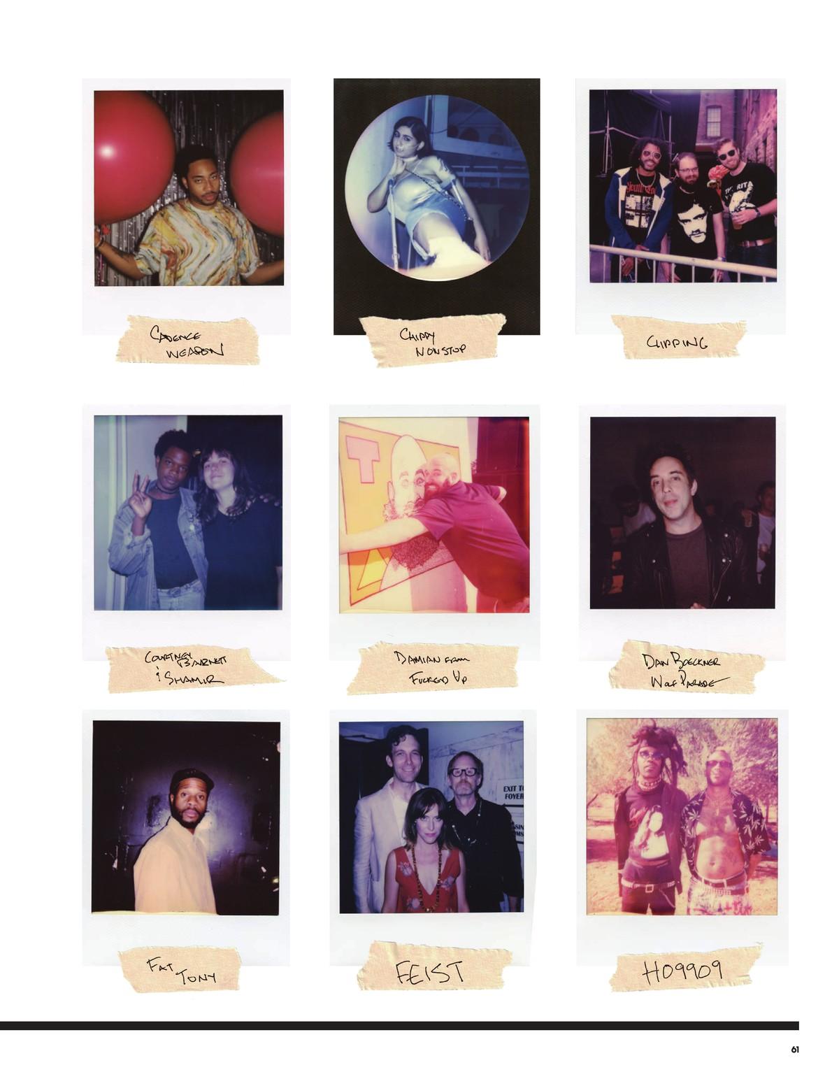 Kate Killet has a running bit “that I repeat too much,” about how she’s “the next Andy Warhol but, like, better.” She says this self-effacingly, belying the truth of her being the scene queen of Toronto, a heavy crown that comes with a sense of responsibility and gratitude. She loves her community of weirdos, and she works hard on its behalf. A relentless booster of all things local and DIY, Killet is the founder and president of POSIVIBEZ, the “interdisciplinary art collective” that serves as a beacon for Canada’s counterculture. In this capacity, and as a longtime journalist and photographer, Killet has taken it upon herself to document all the real wild ones who make up both the local and touring-through freak scene of Toronto. Her Polaroids serve as a visual history of the music that thrives, against all odds, in the shadow of monoculture. While primarily working in digital, Killet has always appreciated the derring-do required to work with film and for over 10 years has been showing up at shows and award events with a Polaroid camera in hand.
