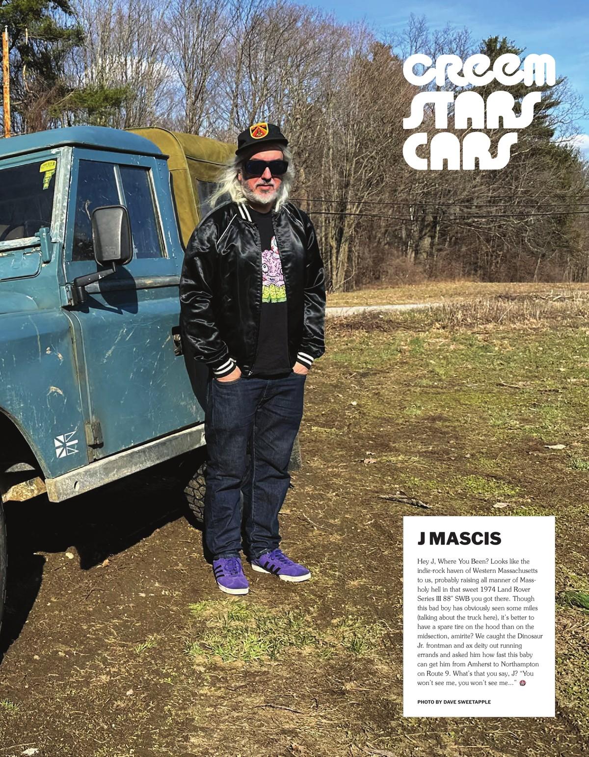 Hey J, Where You Been? Looks like the indie-rock haven of Western Massachusetts to us, probably raising all manner of Massholy hell in that sweet 1974 Land Rover Series III 88" SWB you got there. Though this bad boy has obviously seen some miles (talking about the truck here), it’s better to have a spare tire on the hood than on the midsection, amirite? We caught the Dinosaur Jr. frontman and ax deity out running errands and asked him how fast this baby can get him from Amherst to Northampton on Route 9. What’s that you say, J? “You won’t see me, you won’t see me...”