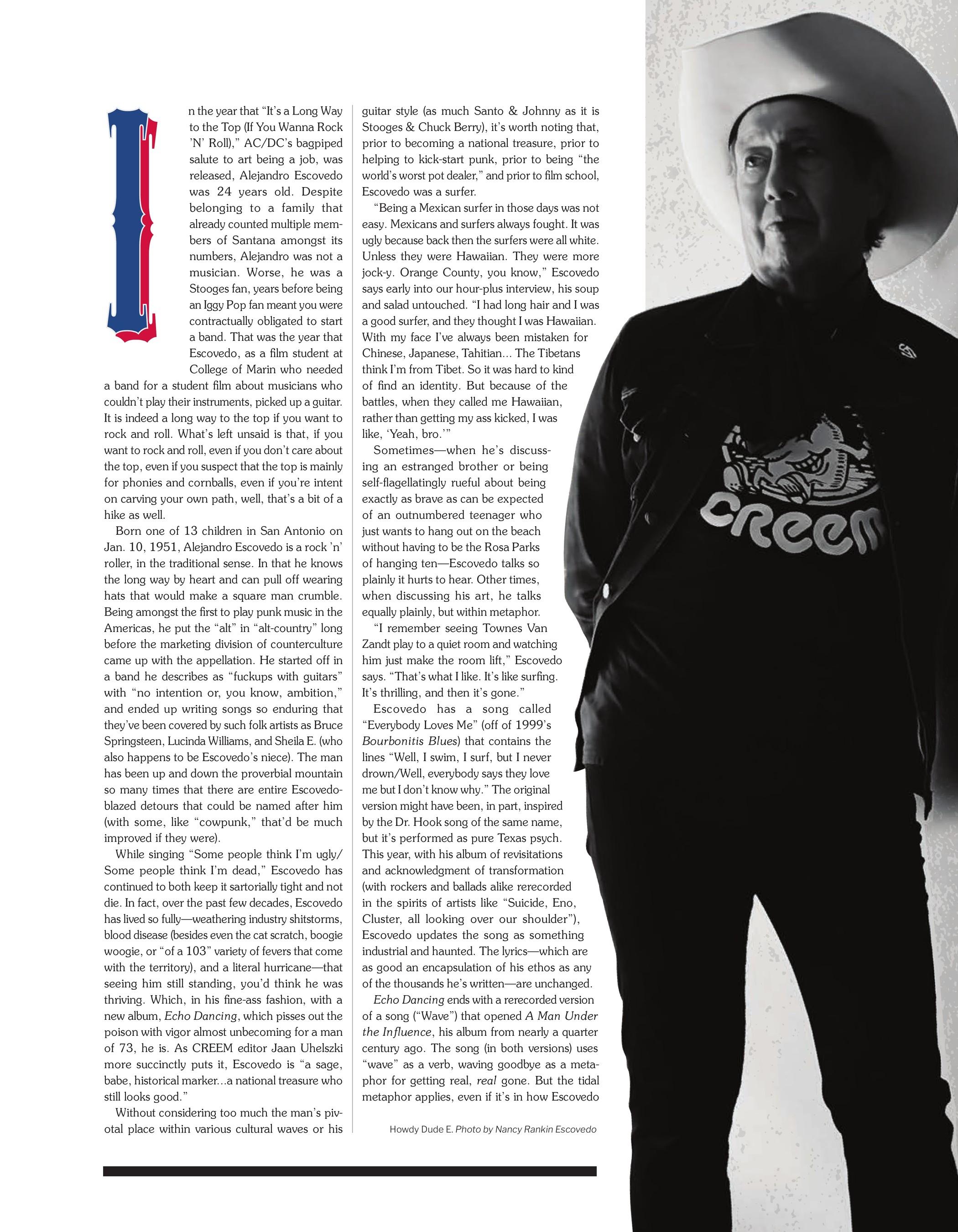 In the year that “It’s a Long Way to the Top (If You Wanna Rock ’N’ Roll),” AC/DC’s bagpiped salute to art being a job, was released, Alejandro Escovedo was 24 years old. Despite belonging to a family that already counted multiple members of Santana amongst its numbers, Alejandro was not a musician. Worse, he was a Stooges fan, years before being an Iggy Pop fan meant you were contractually obligated to start a band. That was the year that Escovedo, as a film student at College of Marin who needed a band for a student film about musicians who couldn’t play their instruments, picked up a guitar. It is indeed a long way to the top if you want to rock and roll. What’s left unsaid is that, if you want to rock and roll, even if you don’t care about the top, even if you suspect that the top is mainly for phonies and cornballs, even if you’re intent on carving your own path, well, that’s a bit of a hike as well.