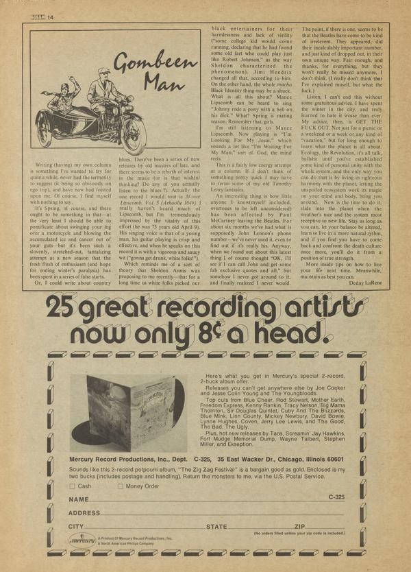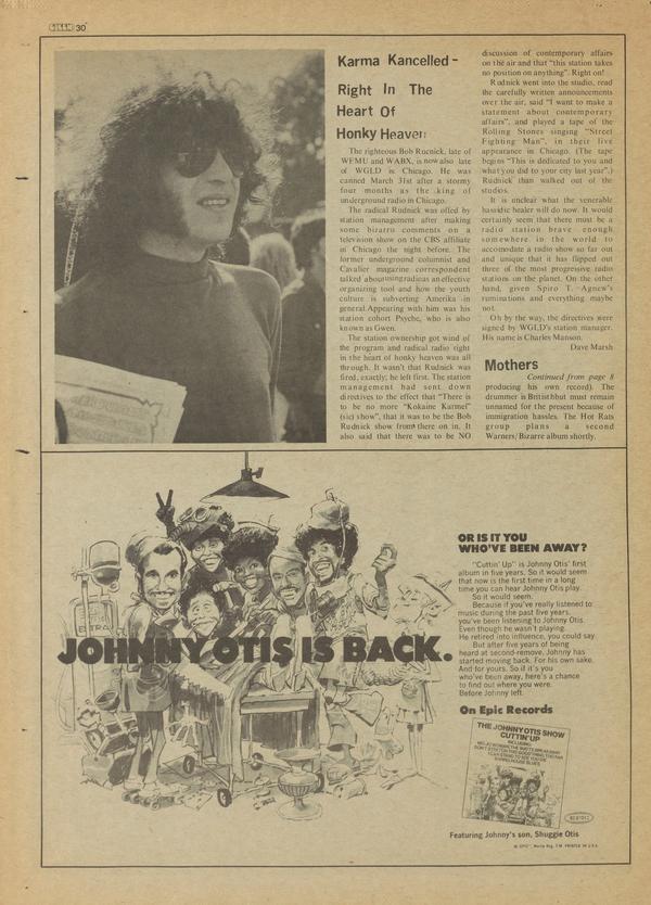 The righteous Bob Rucnick, late of WFMU and WABX, is now also late of WGLD is Chicago. He was canned March 31st after a stormy four months as the king of underground radio in Chicago.
