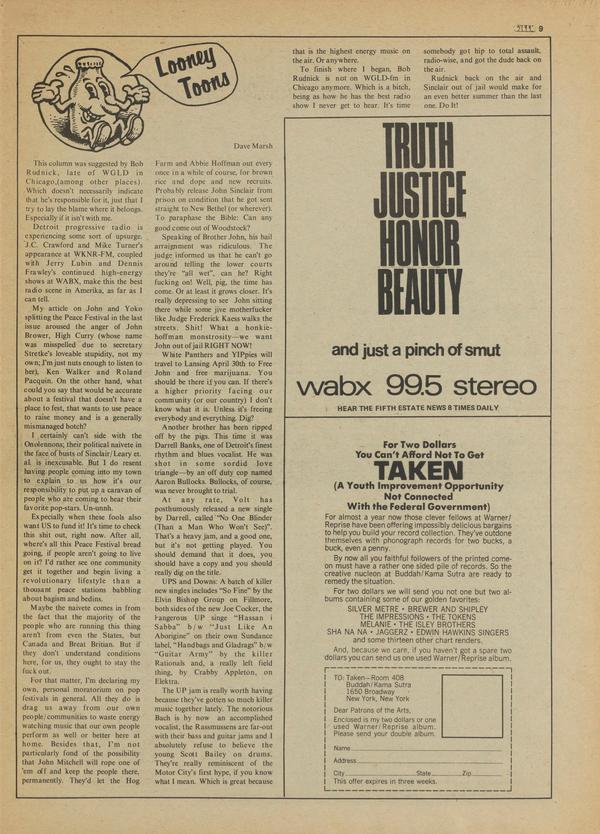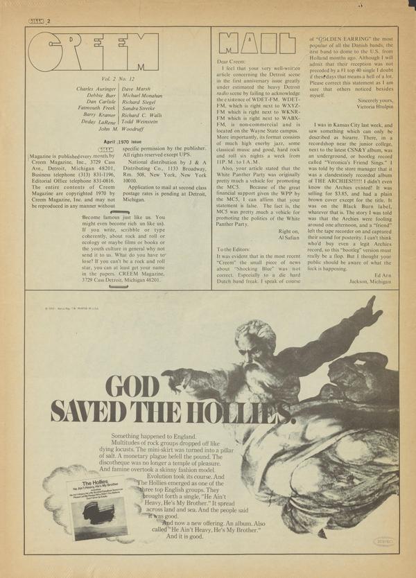 Dear Creem: I feel that your very well-written article concerning the Detroit scene in the first anniversary issue greatly under estimated the heavy Detroit radio scene by failing to acknowledge the existence of WDET-FM.