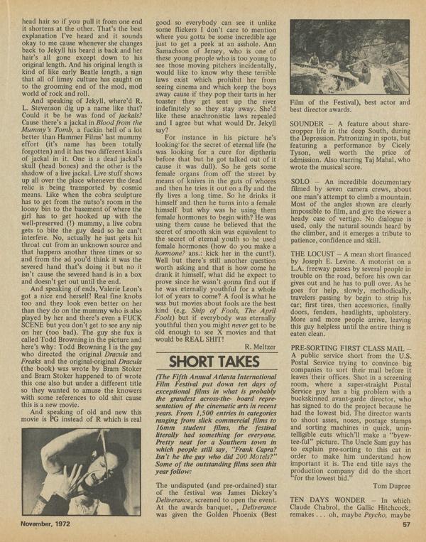 Blacula, already a smash hit, is just the first black version of suspense-horror movies AIP is producing. Sammy Davis, Jr. may do Dr. Jekyll and Mr. Hyde, and producer Jack Naar is talking to Muhammad AH’s lawyers about a remake of a horror classic starring the Muslim mauler — it’s possible, if there is no sex in the picture.