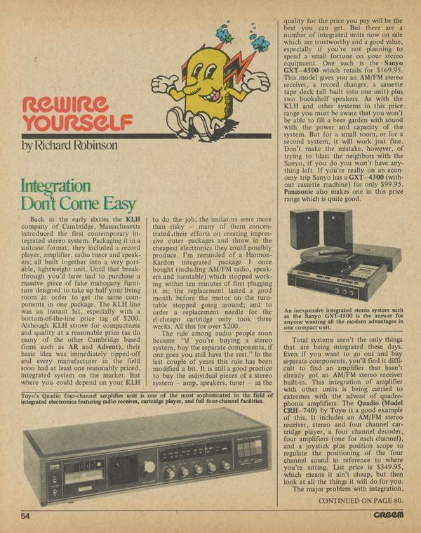 Back in the early sixties the KLH company of Cambridge, Massachusetts introduced the first contemporary integrated stereo system.