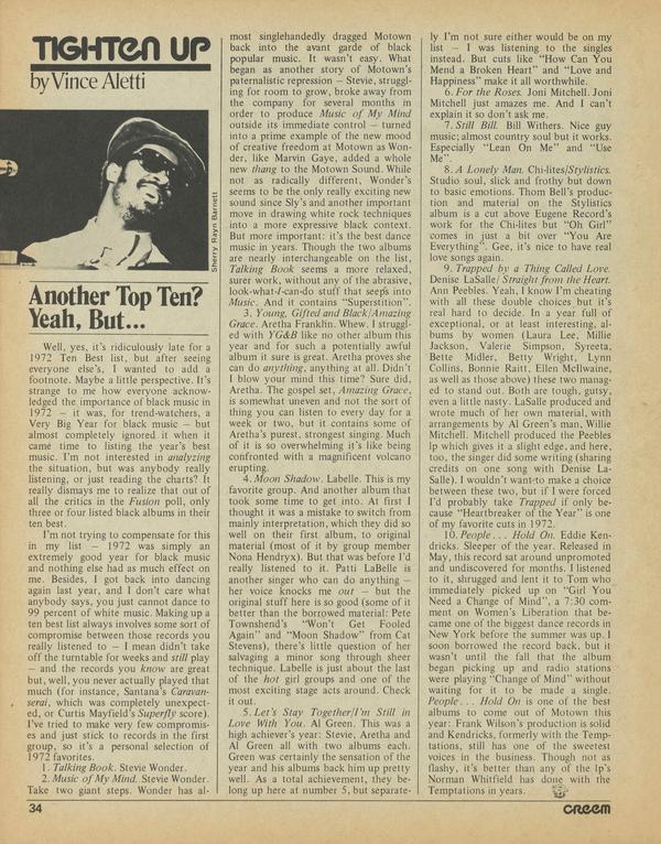 Well, yes, it’s ridiculously late for a 1972 Ten Best list, but after seeing everyone else’s, I wanted to add a footnote. Maybe a little perspective. It’s, strange to me how everyone acknowledged the importance of black music in 1972 — it was, for trend-watchers, a Very Big Year for black music — but almost completely ignored it when it came time to listing the year’s best music.