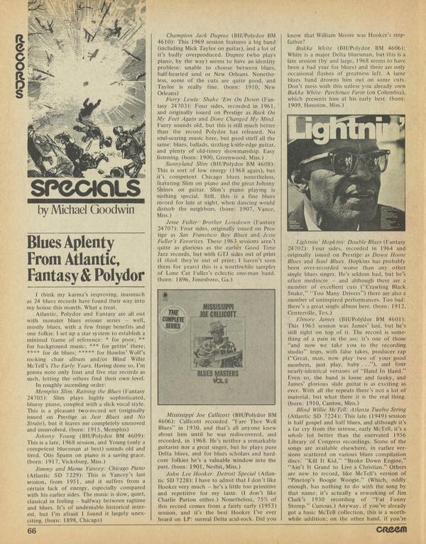 I think my karma’s improving, inasmuch as 24 blues records have found their way into my house this month. What a treat. Atlantic, Polydor and Fantasy are all out with monster blues reissue series — well, mostly blues, with a few fringe benefits and one folkie.