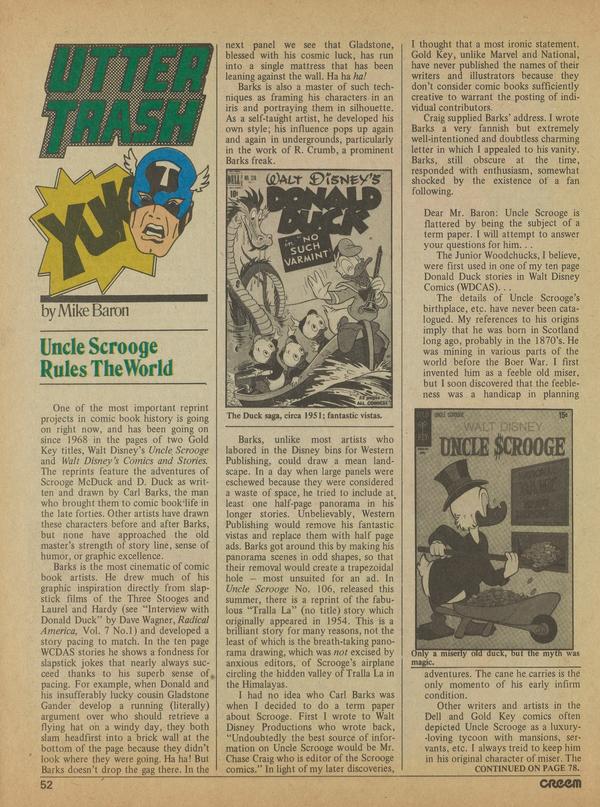 One of the most important reprint projects in comic book history is going on right now, and has been going on since 1968 in the pages of two Gold Key titles, Walt Disney’s Uncle Scrooge and Walt Disney’s Comics and Stories. The reprints feature the adventures of Scrooge McDuck and D. Duck as written and drawn by Carl Barks, the man who brought them to comic book life in the late forties. Other artists have drawn these characters before and after Barks, but none have approached the old master’s strength of story line, sense of humor, or graphic excellence.