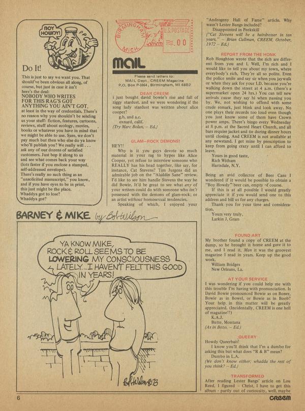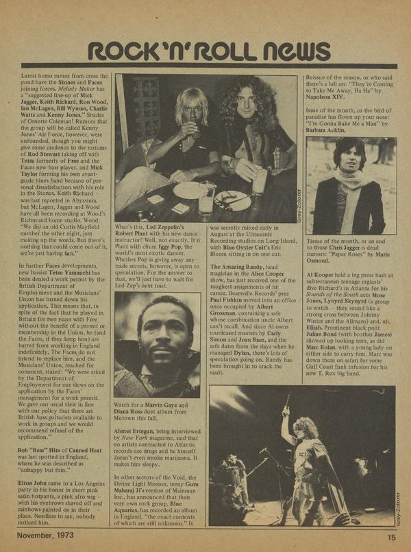 Why is it you guys devote so much material in your rag to hypes like Alice Cooper, yet refuse to interview someone who REALLY has his head together, like say, for instance, Cat Stevens? Tim Jurgens did an admirable job on the “Aladdin Sane” review.