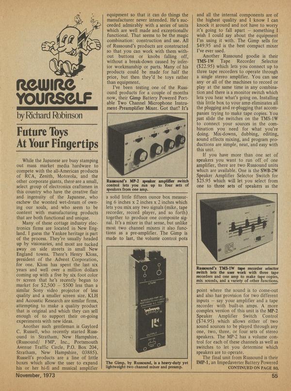 While the Japanese are busy stamping out mass market media hardware to compete with the all-American products of RCA, Zenith, Motorola, and the other corporate giants, there are a small, select group of electronics craftsmen in this country who have the creative flair and ingenuity of the Japanese, who eschew the worsted wet-dream of owning our souls, and who seem to be content with manufacturing products that are both functional and unique.
