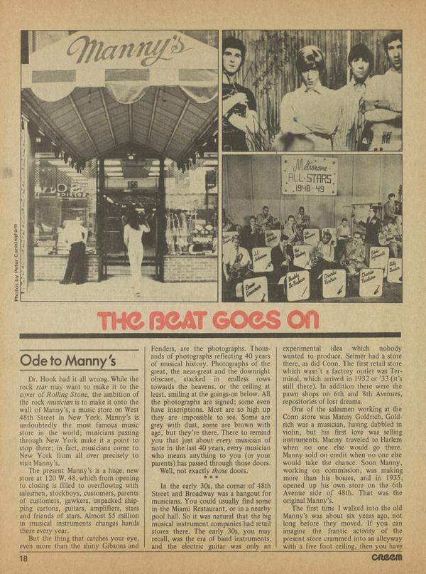 Dr. Hook had it all wrong. While the rock star may want to make it to the cover of Rolling Stone, the ambition of the rock musician is to make it onto the wall of Manny’s, a music store on West 48th Street in New York. Manny’s is undoubtedly the most famous music store in the world;
