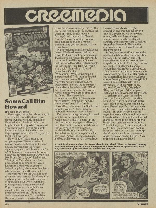 Rampaging through the bosco city of Cleveland, Howard the Duck on a downtown bus viciously attacks the Kidney Lady.