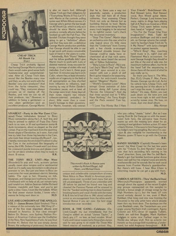 This month’s Rock-A-Ramas were written by Richard Riegel, Jeff Nesin, and Michael Davis.
