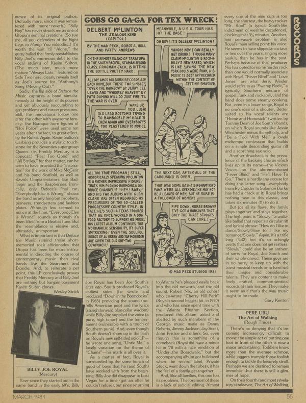The Bus Boys shuffled into the nation's consciousness late in 1980 on their debut album, Minimum Wage Rock 'n' Roll. Five black guys and a chicano drummer, they came up with a cool idea—Aunt Jemima rock—and proceeded to make it work. The LP is genuinely funny and, jeepers creepers, they're from Los Angeles.