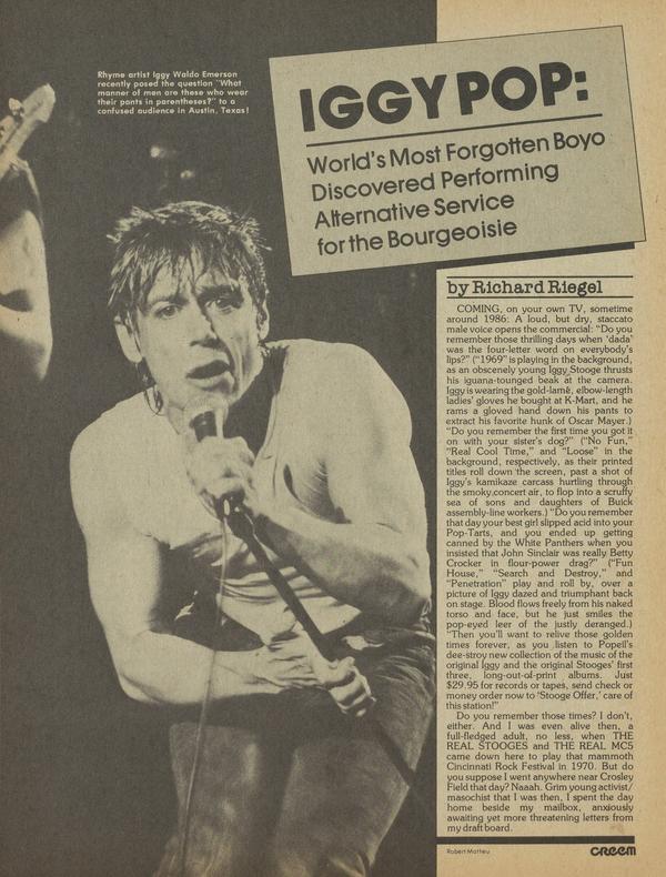 IGGY POP: World’s Most Forgotten Boy Discovered Performing Alternative Service for the Bourgeoisie