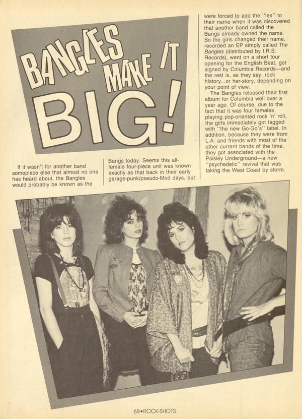 If it wasn’t for another band someplace else that almost no one has heard about, the Bangles would probably be known as the Bangs today. Seems this allfemale four-piece unit was known exactly as that back in their early garage-punk/pseudo-Mod days, but were forced to add the “les” to their name when it was discovered that another band called the Bangs already owned the name.
