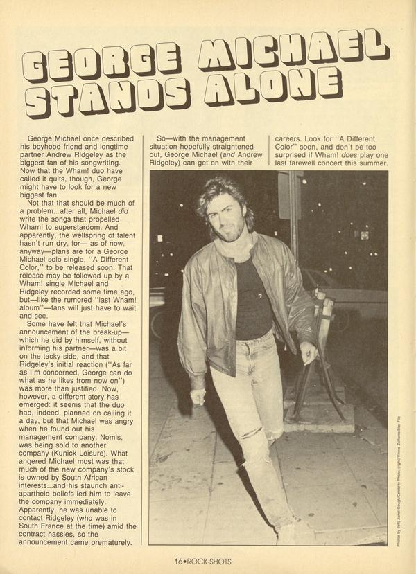 George Michael once described his boyhood friend and longtime partner Andrew Ridgeley as the biggest fan of his songwriting. Now that the Wham! duo have called it quits, though, George might have to look for a new biggest fan. Not that that should be much of a problem...after all, Michael did write the songs that propelled Wham!