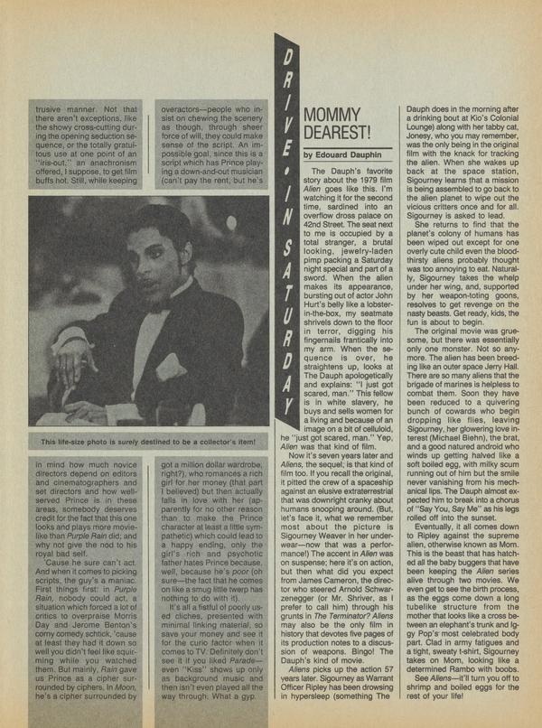 The Dauph’s favorite story about the 1979 film Alien goes like this. I’m watching it for the second time, sardined into an overflow dross palace on 42nd Street. The seat next to me is occupied by a total stranger, a brutal looking, jewelry-laden pimp packing a Saturday night special and part of a sword.