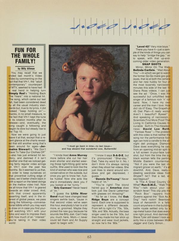 You may recall that we ended last month’s Video Video by commenting on the fact that that VH-1 seemed to have had a real hand in helping turn Simply Red’s ‘‘Holding Back The Years” into a national hit.