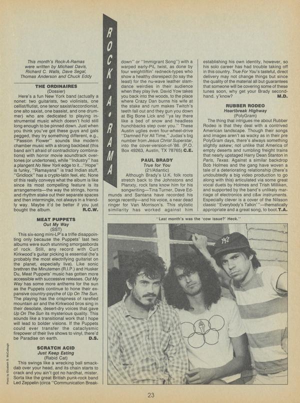 This month’s Rock-A-Ramas were written by Michael Davis, Richard C. Walls, Dave Segal, Thomas Anderson and Chuck Eddy.