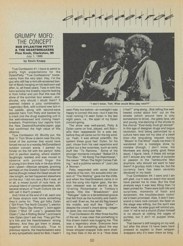 This concert, filmed in February 1986 during Dylan’s tour of Australia with Tom Petty & The Heartbreakers, was probably ultimately as uneven as most other Dylan product of the past few years. But set into the video wasteland TV rock is rapidly becoming, Dylan’s unadorned concert was rather bracing stuff.