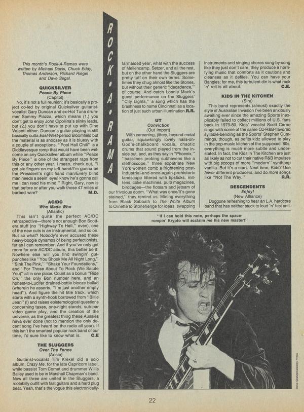 This month’s Rock-A-Ramas were written by Michael Davis, Chuck Eddy, Thomas Anderson, Richard Riegel and Dave Segal.