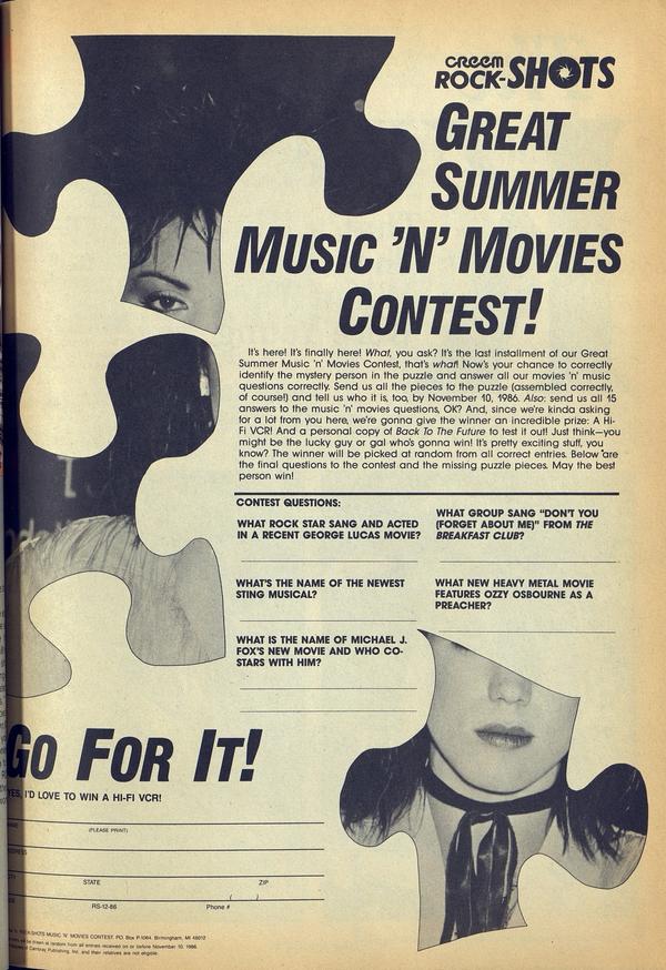 CREEM ROCK-SHOT GREAT SUMMER MUSIC 'N' MOVIES CONTEST!