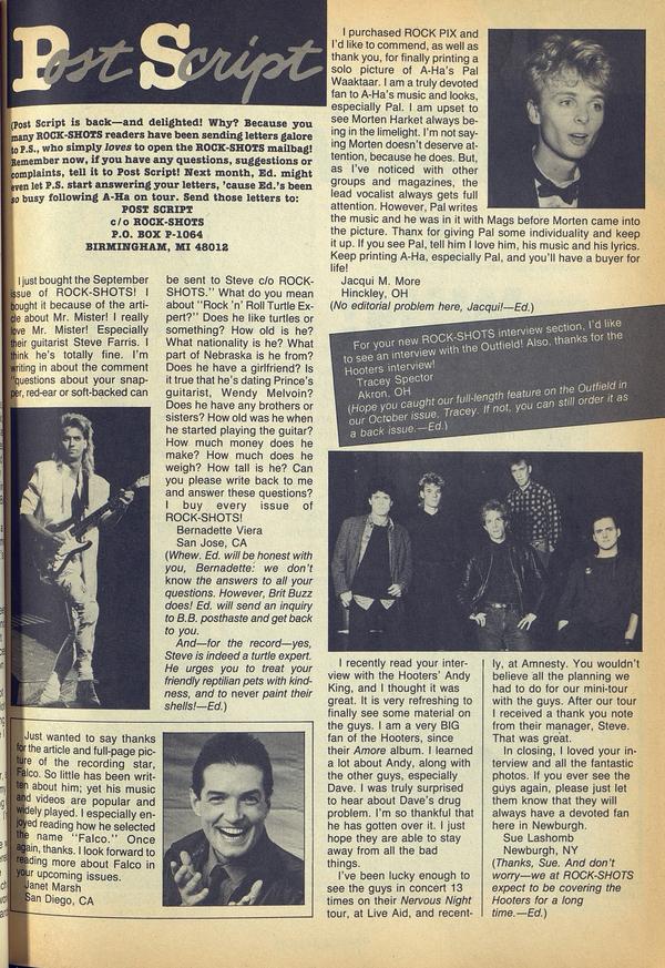 (Post Script is back—and delighted! Why? Because you many ROCK-SHOTS readers have been sending letters galore to P.S., who simply loves to open the ROCK-SHOTS mailbag! Remember now, if you have any questions, suggestions or complaints, tell it to Post Script!
