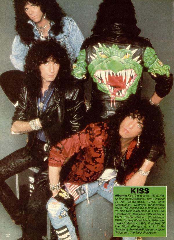 Albums: Kiss (Casablanca, 1975), Hotter Than Hell (Casablanca, 1974), Dressed To Kill (Casablanca, 1975), Alive (Casablanca), Destroyer (Casablanca, 1976), The Originals (Casablanca), Rock 'N' Roll Over (Casablanca), Love Gun (Casablanca), Kiss Alive II (Casablanca, 1977), Double Platinum (Casablanca, 1978), Dynasty (Casablanca, 1979), Unmasked (Mercury, 1980), Preachers Of The Night (Polygram), Lick It Up (Polygram), Animalize (Polygram), Asylum (Polygram), The Elder (Polygram).