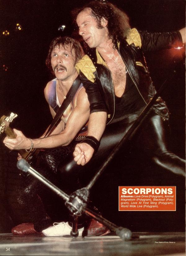 Albums: Love Drive (Polygram), Animal Magnetism (Polygram), Blackout (Polygram), Love At First Sting (Polygram), World Wide Live (Polygram).