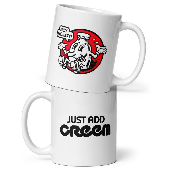 Every new Print subscription gets a FREE mug! Fill it with your favorite beverage, then top it with a touch of CREEM. Boy Howdy! logo on one side, “Just add CREEM” on the other.