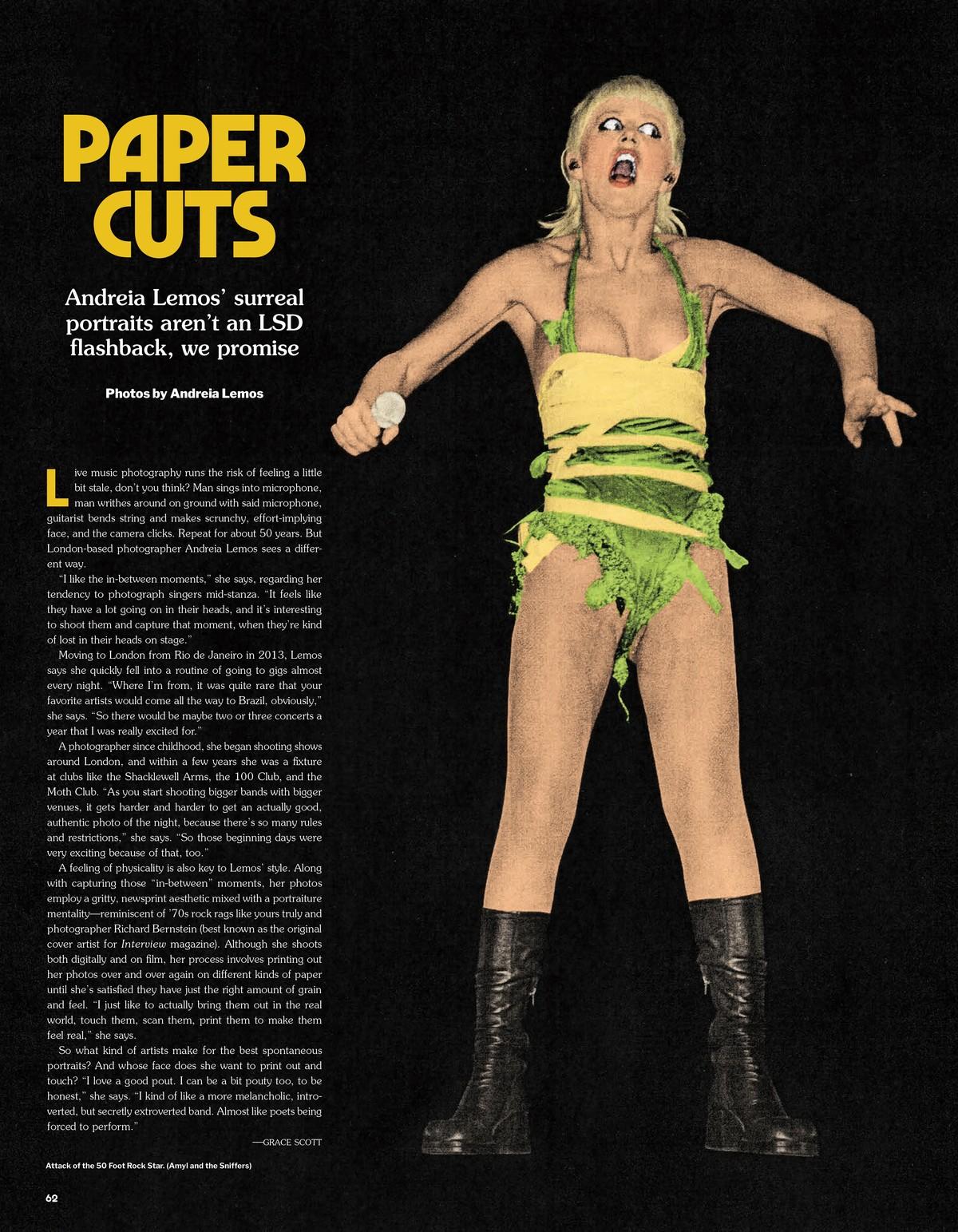 Live music photography runs the risk of feeling a little bit stale, don't you think? Man sings into microphone, man writhes around on ground with said microphone, guitarist bends string and makes scrunchy, effort-implying face, and the camera clicks. Repeat for about 50 years. But London-based photographer Andreia Lemos sees a different way.