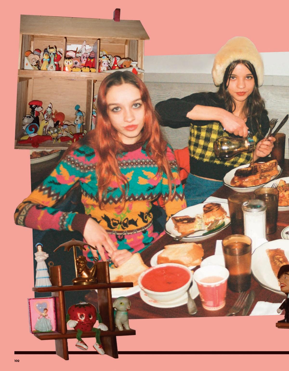 On a very cold and rainy Sunday afternoon in December, Tchotchke and I are ordering the sort of unconventional 3 p.m. “lunch” one can only get at a kosher diner where the three meals of the day are mashed into one menu. For Anastasia Sanchez (vocals, drums), a tuna melt; for Emily Tooraen (guitar), mushroom barley soup; and for Eva Leon Chambers (bass), the challah french toast. “This is so our personalities so far,” Eva says. How so?