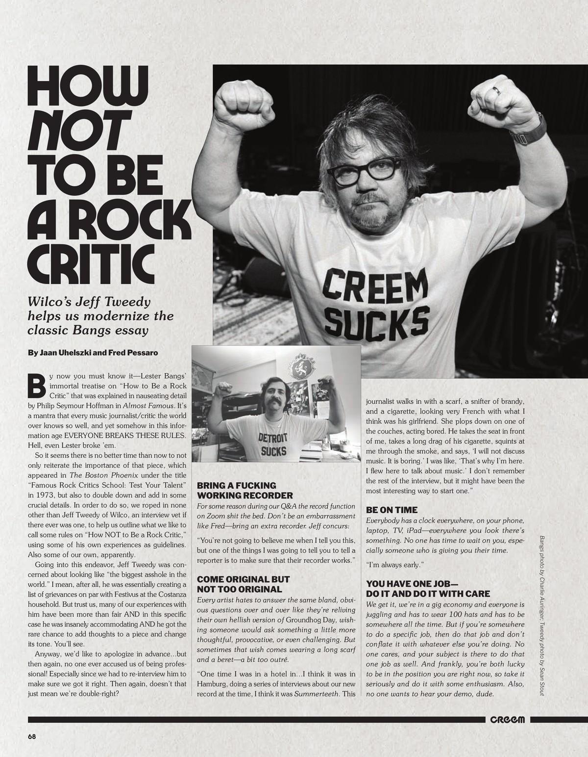 So it seems there is no better time than now to not only reiterate the importance of that piece, which appeared in The Boston Phoenix under the title “Famous Rock Critics School: Test Your Talent” in 1973, but also to double down and add in some crucial details. In order to do so, we roped in none other than Jeff Tweedy of Wilco, an interview vet if there ever was one, to help us outline what we like to call some rules on “How NOT to Be a Rock Critic,” using some of his own experiences as guidelines. Also some of our own, apparently.