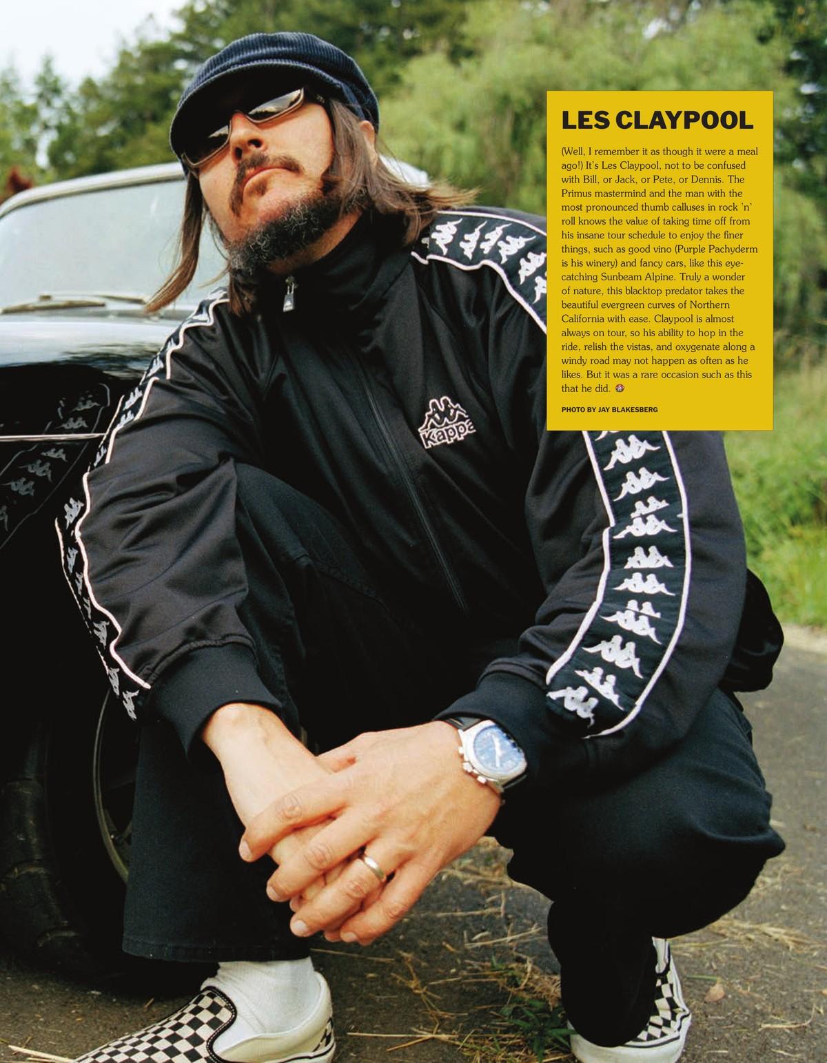 (Well, I remember it as though it were a meal ago!) It’s Les Claypool, not to be confused with Bill, or Jack, or Pete, or Dennis. The Primus mastermind and the man with the most pronounced thumb calluses in rock ’n’ roll knows the value of taking time off from his insane tour schedule to enjoy the finer things, such as good vino (Purple Pachyderm is his winery) and fancy cars, like this eyecatching Sunbeam Alpine. Truly a wonder of nature, this blacktop predator takes the beautiful evergreen curves of Northern California with ease. Claypool is almost always on tour, so his ability to hop in the ride, relish the vistas, and oxygenate along a windy road may not happen as often as he likes. But it was a rare occasion such as this that he did.