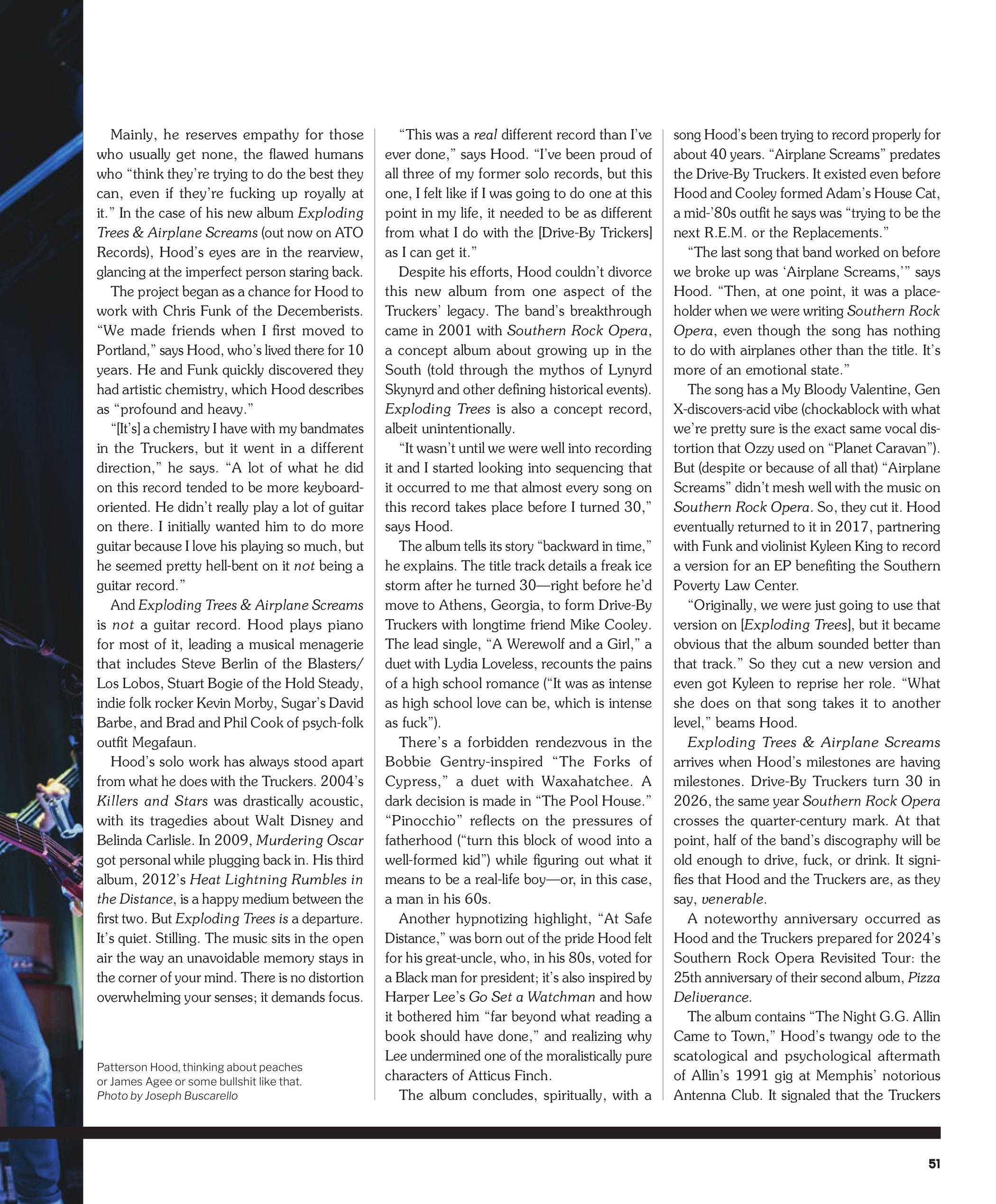 Often his songs present subjects naked on the fork: their sins exposed, but the context behind their actions is explained without judgment. But not always. “Occasionally,” says Hood on a call from his home in Portland, Ore., “there are songs that just call for a certain amount of moralizing."