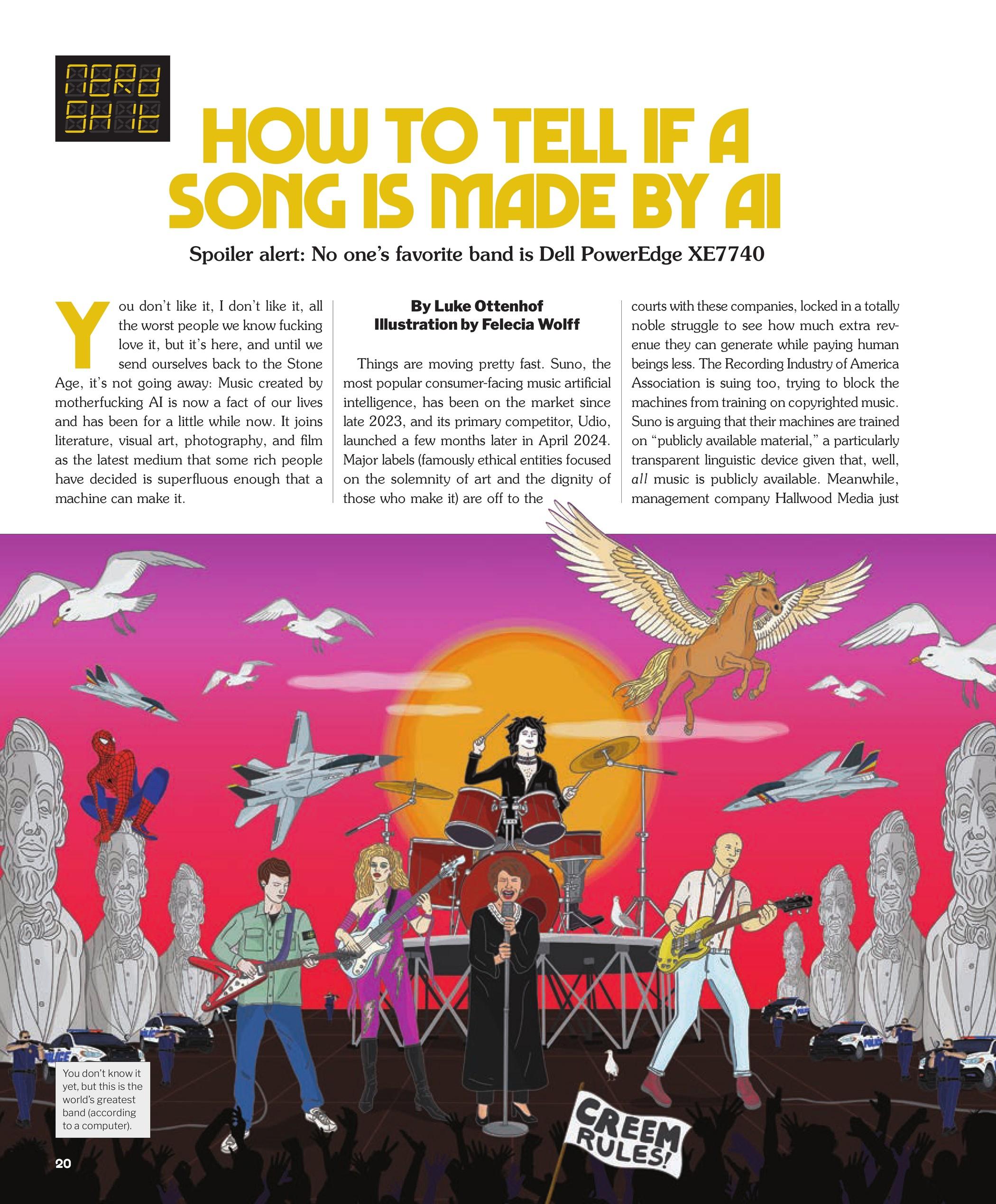 You don’t like it, I don’t like it, all the worst people we know fucking love it, but it’s here, and until we send ourselves back to the Stone Age, it’s not going away: Music created by motherfucking AI is now a fact of our lives and has been for a little while now. It joins literature, visual art, photography, and film as the latest medium that some rich people have decided is superfluous enough that a machine can make it.