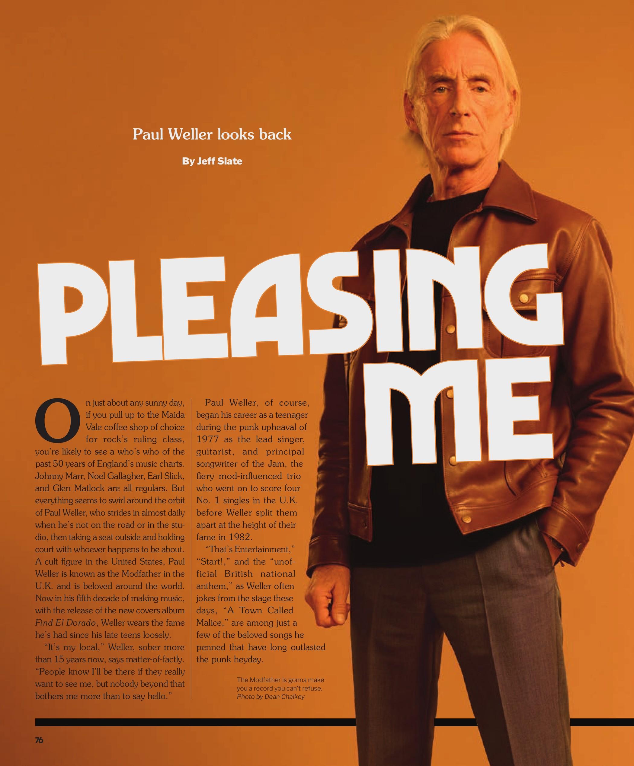 On just about any sunny day, if you pull up to the Maida Vale coffee shop of choice for rock’s ruling class, you’re likely to see a who’s who of the past 50 years of England’s music charts. Johnny Marr, Noel Gallagher, Earl Slick, and Glen Matlock are all regulars. But everything seems to swirl around the orbit of Paul Weller, who strides in almost daily when he’s not on the road or in the studio, then taking a seat outside and holding court with whoever happens to be about. A cult figure in the United States, Paul Weller is known as the Modfather in the U.K. and is beloved around the world. Now in his fifth decade of making music, with the release of the new covers album Find El Dorado, Weller wears the fame he’s had since his late teens loosely.