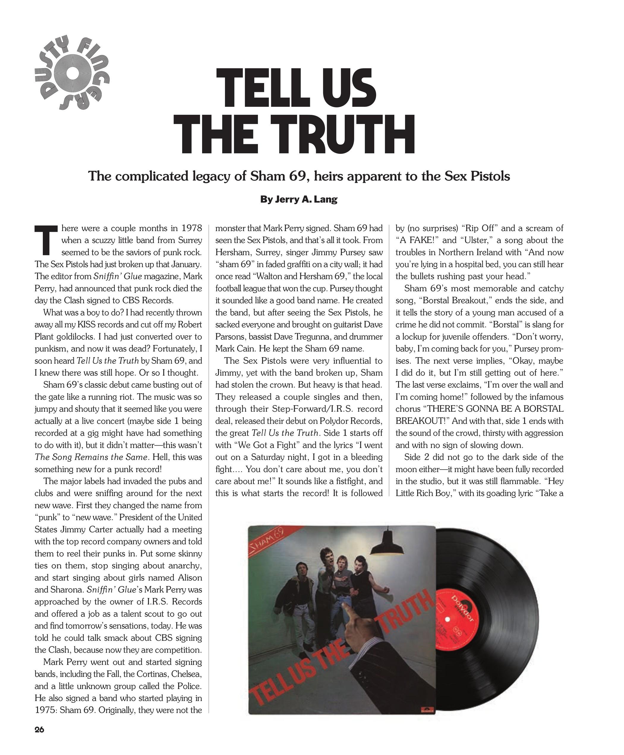 What was a boy to do? I had recently thrown away all my KISS records and cut off my Robert Plant goldilocks. I had just converted over to punkism, and now it was dead? Fortunately, I soon heard Tell Us the Truth by Sham 69, and I knew there was still hope. Or so I thought.