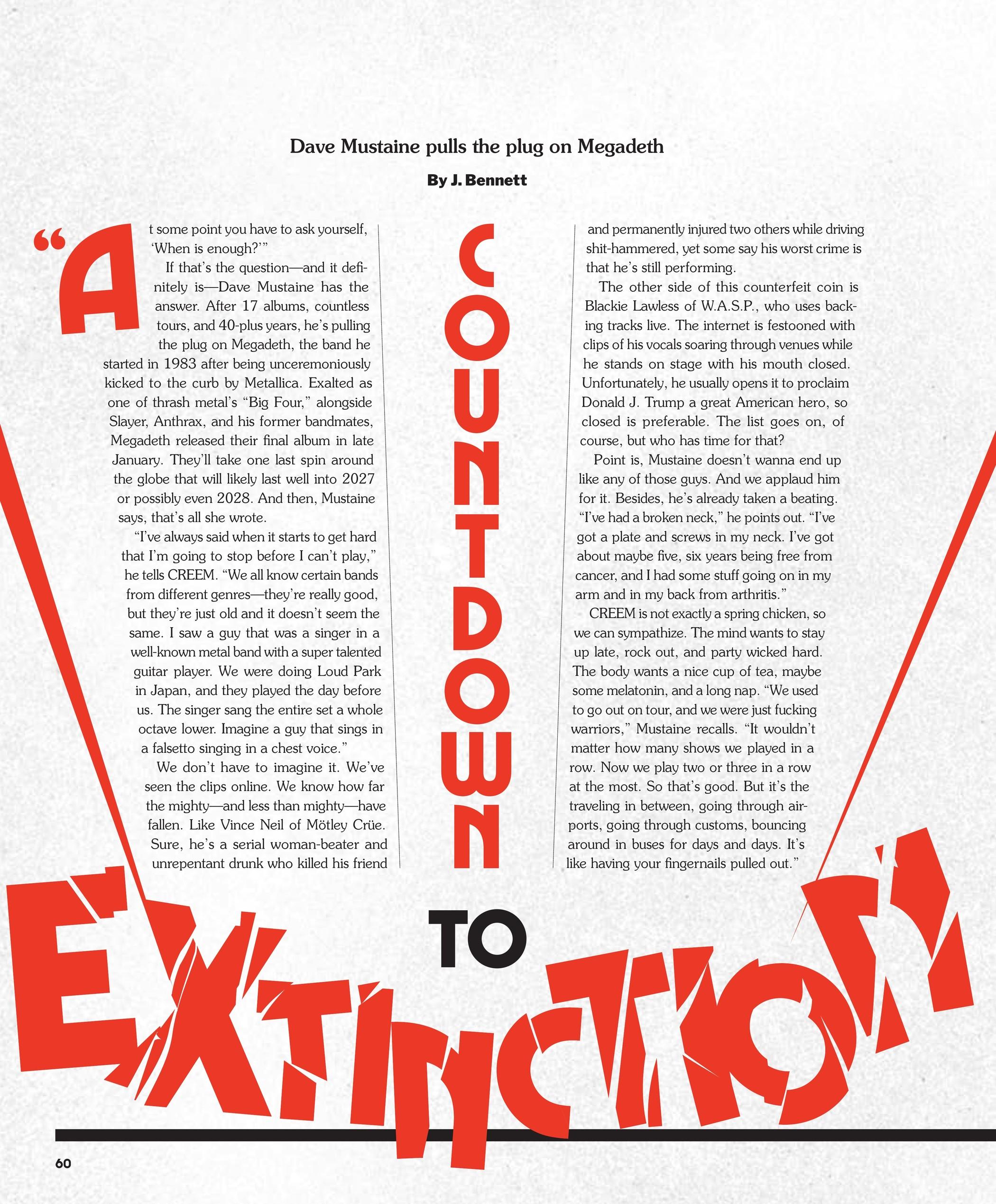 If that’s the question—and it definitely is—Dave Mustaine has the answer. After 17 albums, countless tours, and 40-plus years, he’s pulling the plug on Megadeth, the band he started in 1983 after being unceremoniously kicked to the curb by Metallica. Exalted as one of thrash metal’s "Big Four," alongside Slayer, Anthrax, and his former bandmates, Megadeth released their final album in late January. They’ll take one last spin around the globe that will likely last well into 2027 or possibly even 2028. And then, Mustaine says, that’s all she wrote.
