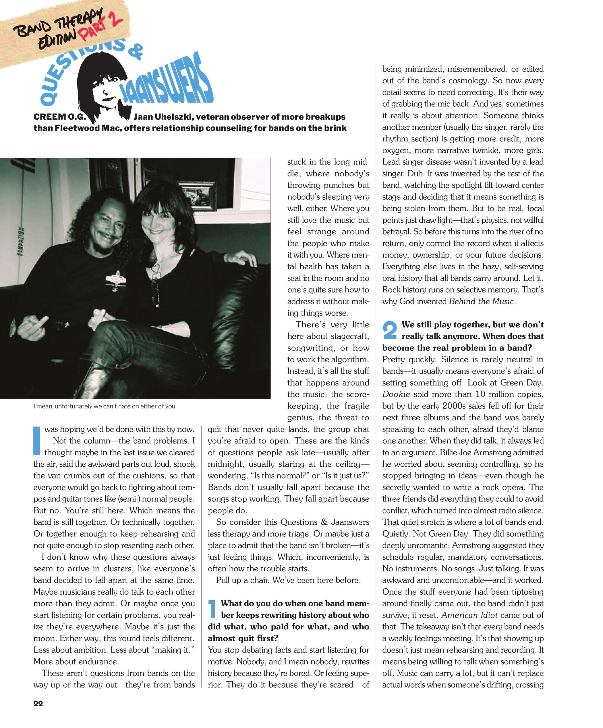 CREEM O.G. Jaan Uhelszki, veteran observer of more breakups than Fleetwood Mac, offers relationship counseling for bands on the brink
