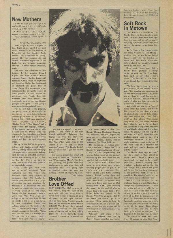 NEW YORK—The ABC network of FM stations, long the bane of the progressive rock radio scene with its douse Love format, is making all sorts of moves in the right direction. They’ve hired Larry Yurdin, formerly head of the Alternative Media Project (CREEM, Vol. 2, No. 14) as national production director for the entire group of stations and are busy making plans to move towards more community orientation in several key areas.