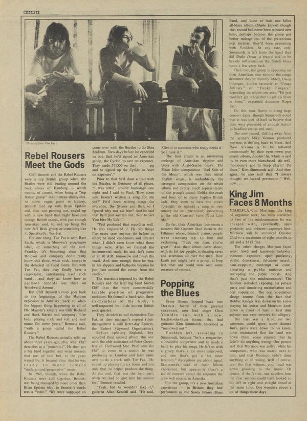 Savoy Brown bopped back into Detroit, home of their greatest successes, sans lead singer Chris Youlden and with a new, back-to-the-blues format that lead guitarist Kim Simmonds described as “mellowed out.” Youlden left, according to Simmonds, because “he’s a songwriter, a beautiful songwriter and he needs a band to play his songs.