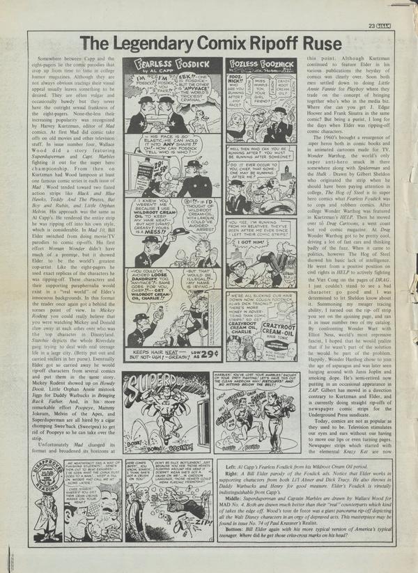 Somewhere between Capp and the eight-pagers lie the comic parodies that crop up from time to time in college humor magazines. Although they are not always obvious tracings their visual appeal usually leaves something to be desired. They are often vulgar and occasionally bawdy but they never have the outright sexual frankness of the eight-pagers.