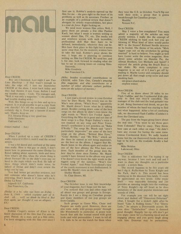Dear CREEM: Boy am I bummed. Last night I saw Two Lane Blacktop — if that wasn’t enough to take the edge off, I lost my September CREEM at the show.
