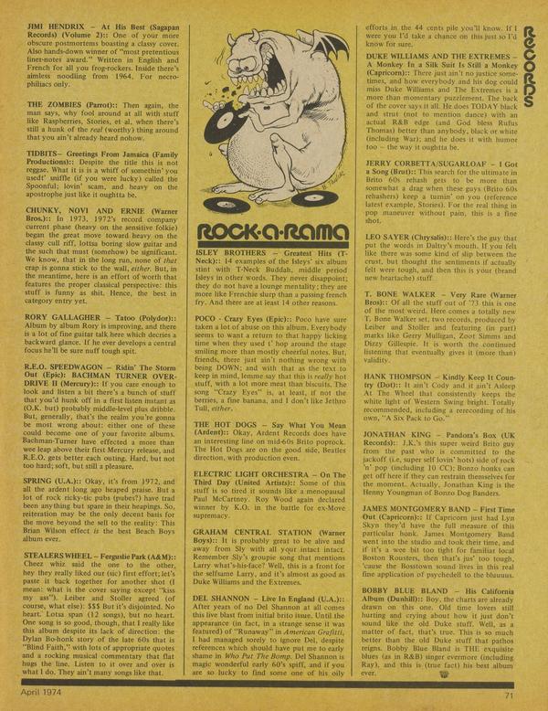 Clarence Carter: “Sixty Minutes with Clarence Carter” (Fame). The title doesn’t describe the record — it’s yet another play of this soul survivor’s back-door routine. But thanks to Rick Hall’s confident cop of the Duane Allman high lick and an unusual things-ain’t-getting-better lyric from George Jackson, this isn’t all routine.