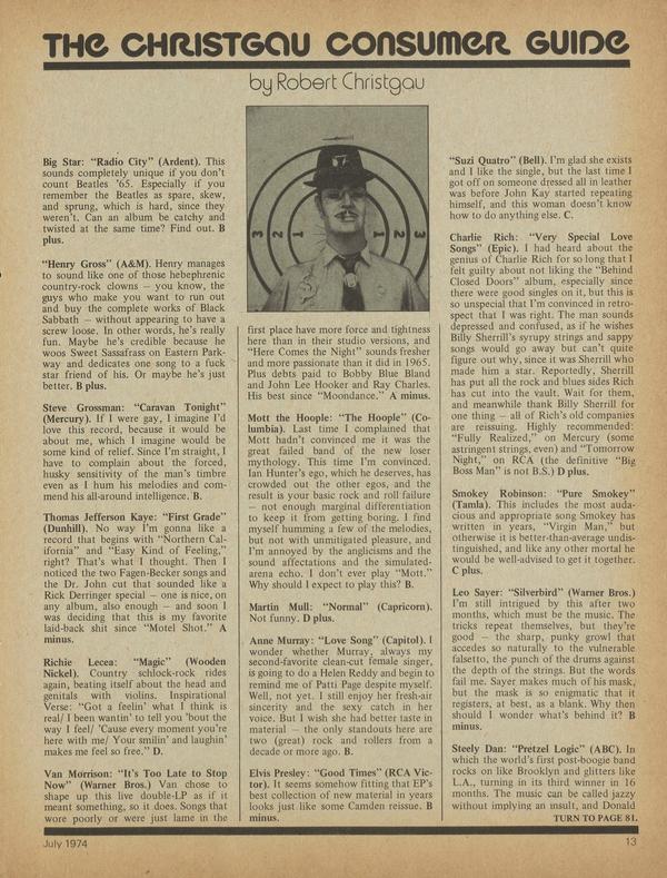 Big Star: "Radio City" (Ardent). This sounds completely unique if you don't count Beatles '65. Especially if you remember the Beatles as spare, skew, and sprung, which is hard, since they weren't. Can an album be catchy and twisted at the same time? Find out.