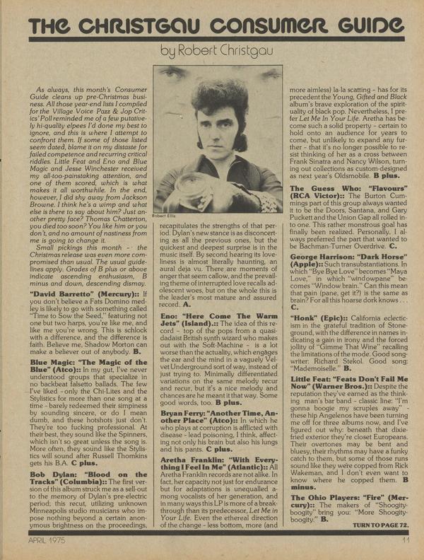 As always, this month’s Consumer Guide cleans up pre-Christmas business. All those year-end lists I compiled for the Village Voice Pazz & Jop Critics’Poll reminded me of a few putatively hi-quality elpees I’d done my best to ignore, and this is where I attempt to confront them.